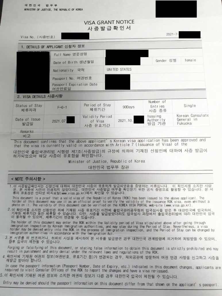 F-6 비자는 국제결혼의 마지막 관문입니다.